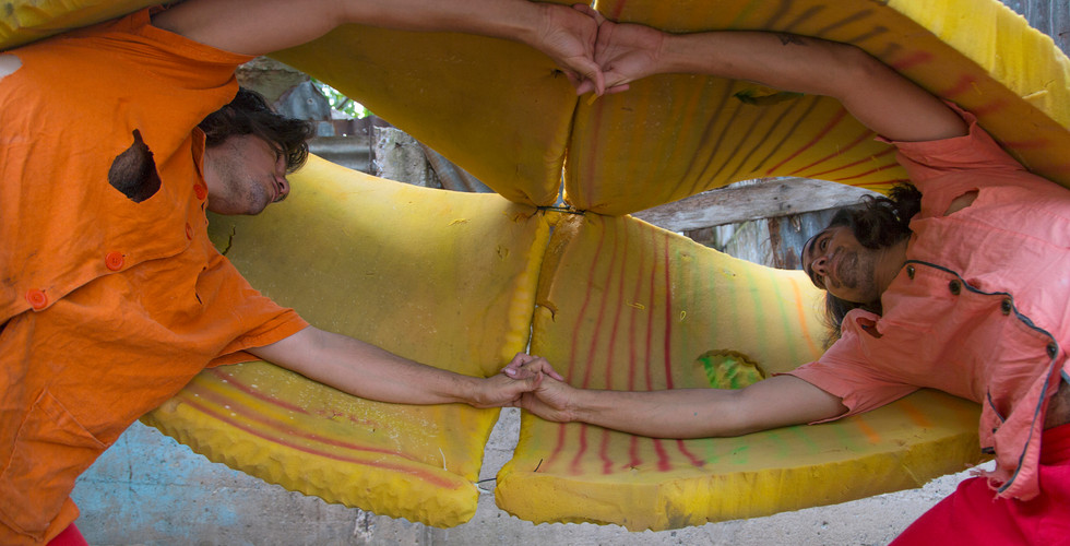 The brothers Pablo and Efraín del Hierro work, as they describe it, in a state of “chaotic tranquility”. Immersed in this condition, they create different types of sculptures and puppets, which are given life in their performances.